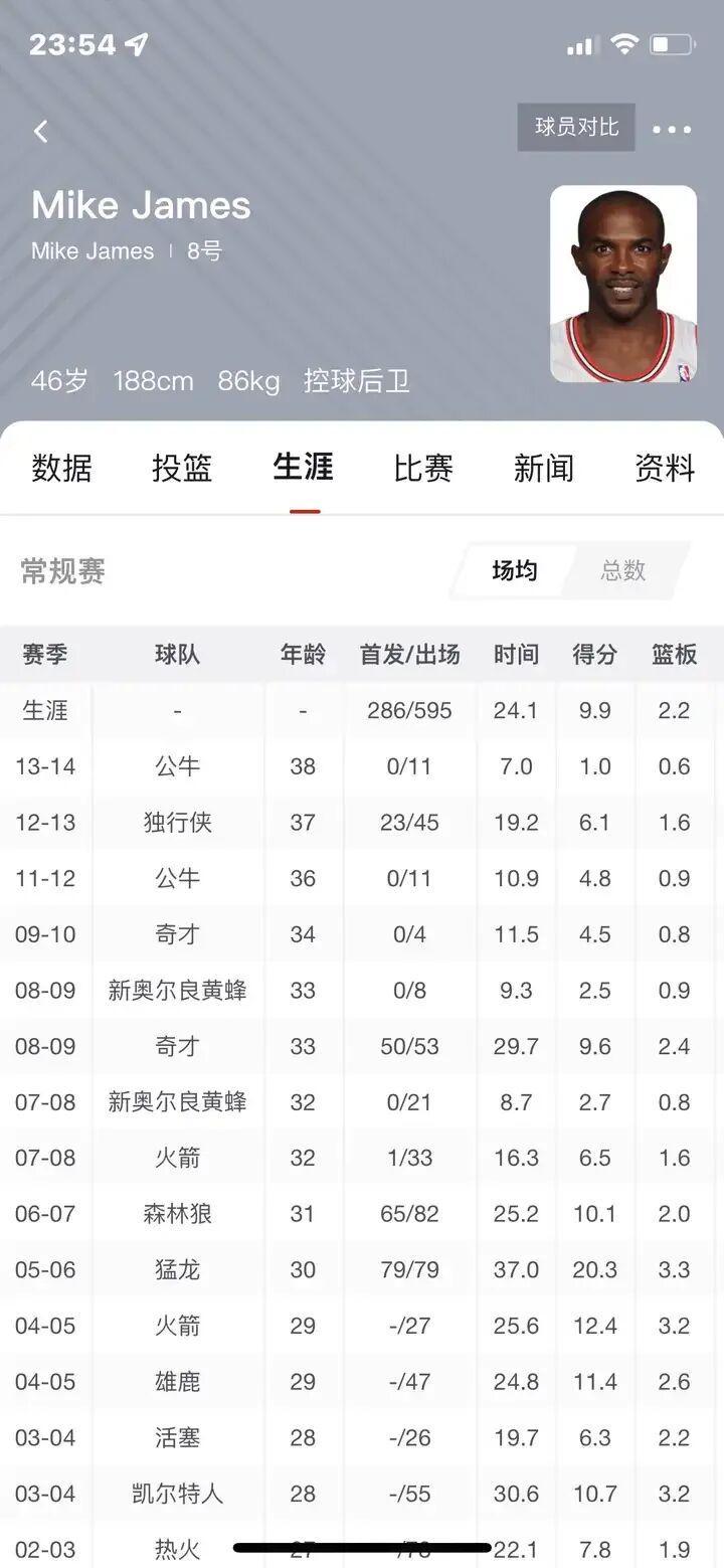 哦对了,这个赛季后麦克詹姆斯就被猛龙给清洗了。然后就继续开启了流浪的生涯。